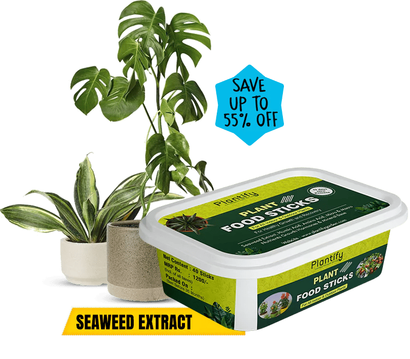 "Plantify Food Stick समुंद्री शैवाल (Seaweed extract), अमीनो एसिड, ह्यूमिक एसिड व मैक्रो और माइक्रो न्यूट्रिएंट्स से भरपूर है जो पौधों को हरा-भरा बनाने और रोगमुक्त रखने में मदद करता है।"